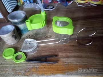 Gioco per fare esperimenti, piccolo scienziato. C'è anche laboratorio di insetti per catturarli (forbicci), lenti di ingrandimenti...