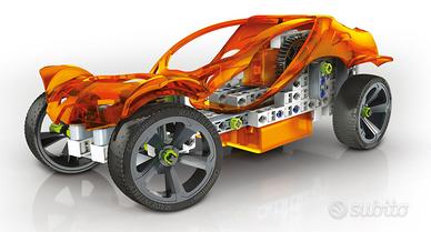 Ricchissimo laboratorio con il quale apprendere in modo divertente i principi della meccanica e dell'ingegneria. Grazie agli oltre 250 componenti contenuti nel gioco si potranno realizzare più di 50 costruzioni di complessità crescente. Si potranno addirittura costruire un elicottero, una gru motorizzata ed un'auto con motore elettrico, nella quale sarà possibile interagire manualmente con il cambio e lo sterzo! Completo di manuale scientifico illustrato per guidare il bambino nelle varie fasi di montaggio che potranno essere svolte in totale sicurezza.