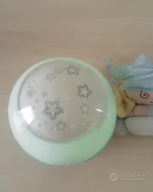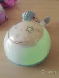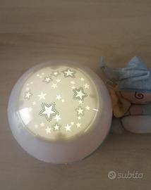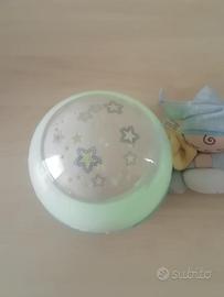 Meravigliosa lampada luminosa e musicale. Pari al nuovo, non presenta difetti. Funziona a batterie, colore azzuro, con peluche Morbidissimo. Si illumina di diversi colori, proietta tante stelline a soffitto, ha anche tante dolci melodie per rilassare il bimbo. €15