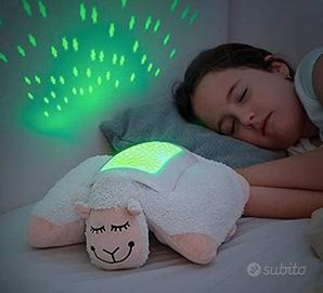 Peluche a forma di pecora che si trasforma facilmente in un proiettore di cielo stellato aprendolo.
