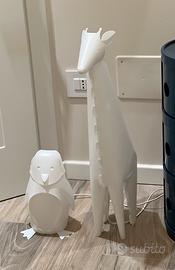 Bellissime lampade raffiguranti una giraffa ed un gufo dotate di normale lampadina a 230V ed interruttore.