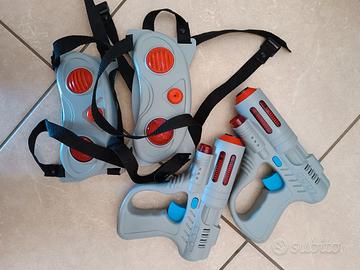 Gioco laser tag elettronico, "Laser Fighter", gioco anni '90 Il set include due pistole laser e due giubbotti sensori. Utilizza la tecnologia di proiezione a infrarossi per registrare i colpi con precisione. La portata delle pistole arriva fino a circa 30 metri. È progettato per battaglie simulate di tipo Laser Tag. funzionante