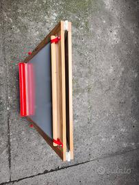 Lavagna a cavalletto per bambini Ikea, tripla funzione: gessi, pennarelli, appendi rotolo carta.
