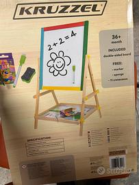 Vendo lavagna per bambini con cavalletto in legno, nuova, mai usata e ancora imballata. Caratteristiche: Lavagna double face Struttura solida in legno Dimensioni: 65,5 × 40 × 33 cm Età consigliata: dai 3 anni in su (36+ mesi) Accessori inclusi: Pennarello Spugna Gessetti colorati Perfetta per disegnare, scrivere e giocare stimolando la creatività 🎨 📦 Disponibili più confezioni ➡️ Sconto per chi acquista più pezzi