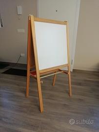 Lavagna creativa per bambini a doppia faccia (gessetti/pennarelli), altezza 117 cm con porta rotolo di carta.