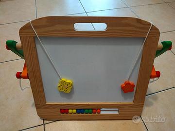Utilizzabile con i gessetti sulla parte nera e con i pennarelli e i magneti sul lato bianco.