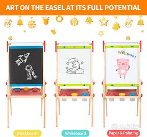 DESIGN TOTALMENTE REGOLABILE: Lavagna con cavalletto regolabile in altezza e inclinazione; include un rullo di carta sostituibile per garantire un divertimento e una creatività illimitati durante il gioco e l’apprendimento.
