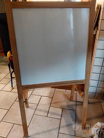 utilizzata. la parte della lavagna si è rovinata. funziona solo la parte bianca dove ci si può scrivere con i pennarelli.