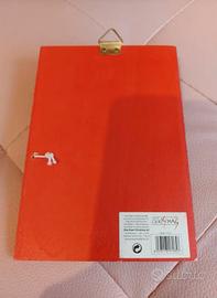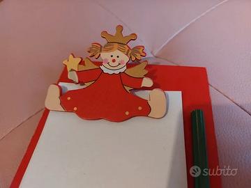 Vendo Lavagna memo in legno rosso con blocco appunti, matita, a tema natalizio, con gancetto per appenderla alla parete.