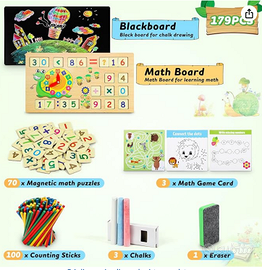 lenbest Giochi Montessori per la Matematica - Giochi Matematici con Conteggio - Giocattoli Bambini in Legno - Giocattolo Educativi Regalo Natale o di Compleanno per 3 4 5 6 Anni Bambini Bambina Giocattolo matematico: il giocattolo matematico lenbest può aumentare la capacità del bambino di comprendere la matematica e sviluppare il pensiero matematico del bambino. I bambini imparano il conteggio, il tempo di apprendimento, l'addizione, la sottrazione, la divisione, la moltiplicazione e i simboli matematici. È utile per la prima educazione e lo sviluppo della matematica del bambino e promuove lo sviluppo intellettuale del bambino. È un gioco di matematica consigliato dagli insegnanti Doppia faccia: i giocattoli educativi lenbest sono stati recentemente aggiornati con un design a doppia faccia. Con il magnetico su un lato, la scheda digitale magnetica può essere attaccata alla lavagna e non cadrà facilmente. Le schede numeriche magnetiche possono anche essere attaccate al frigorifero, consentendo ai bambini di imparare la matematica nella loro vita. Dall'altro lato c'è una lavagna dove il bambino può disegnare con il gesso. Lascia che tuo figlio si sviluppi completamente Istruzione: abbiamo anche aggiunto tabelline, carte da gioco e bastoncini per contare che aiutano i bambini ad imparare la matematica. I problemi aritmetici possono essere presentati in modo intuitivo e il processo di apprendimento non sarà troppo noioso. il giocattolo matematico lenbest può prepararsi per l'apprendimento della scuola primaria e prescolare, esercitare il pensiero logico dei bambini, stimolare l'immaginazione e stimolare completamente il cervello dei bambini su entrambi i lati Materiale ecologico: i giocattoli educativi lenbest sono realizzati in legno di alta qualità e sono materiali ecocompatibili. Ogni bordo viene lucidato più volte e il bordo liscio e piatto impedisce ai trucioli di legno di danneggiare le mani del bambino