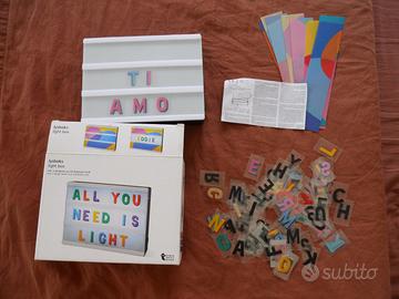 Lavagna retroilluminata 20x15cm (alimentazione con 4 batterie a stilo) per lasciare pensieri e messaggi originali. Sfondi traslucidi e 2 set di lettere permettono di comporre e personalizzare i messaggi su tre righe di testo.