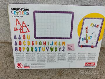 Lavagna magnetica "Quercetti Magnetino Letters". 48 lettere magnetiche colorate per imparare a scrivere e a leggere. Usato pochissimo, condizioni pari al nuovo.