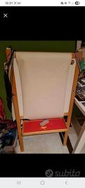 Lavagna per bambini 3 in 1. Lato per gessi, lato per pennarelli ( leggermente segnato da pennarelli non cancellabili. Vedi foto) e foglio a rotolo. Usata ma in buone condizioni.