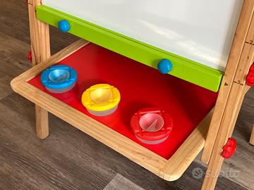 Vendo Hape Lavagna Multiattività, Lavagna per Bambini Double Face con Cavalletto e Supporto Regolabile in Altezza, Rullo di Carta mai usato, Lavagna Bianca per pennarelli e lavagna nera per gessetti. Completa di Tre Vasetti per la Pittura. Molto più di bella della lavagnetta Ikea.