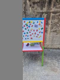 Lavagna per bambini comodissima per disegnare e prime scritture (cosi come da foto), completa di gessetti, lettere e numeri magnetici e cancellino Non si effettuavo spedizioni