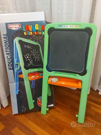 Lavagna bifacciale per gessi e pennarelli con lettere magnetiche.