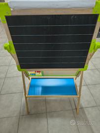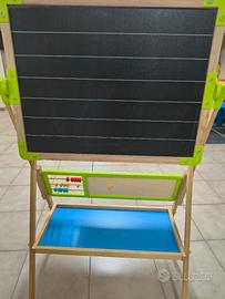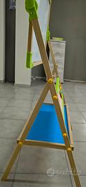 vendo lavagna in legno con un lato da utilizzare con i gessetti e l'altro magnetico e per pennarelli. Completo di rotolo di carta da disegno. Altezza regolabile. ottime condizioni