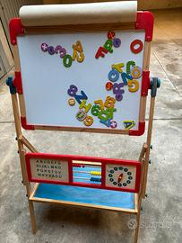 Lavagna magnetica x bambini con cavalletto e rotolo carta, bifacciale, girevole a 360 gradi Dotata di orologio, alfabeto e portaoggetti. Non spedisco