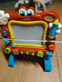lavagna baby Clementoni consigliata dai 18 ai 36 mesi. Come nuova , sì può disegnare con la matita in dotazione, oppure con le forme e le lettere magnetiche . Schiacciando le forme , le lettere e i numeri suona e insegna con divertenti filastrocche e melodie, in italiano e inglese