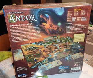 Le Leggende di Andor - gioco da tavolo, nuovo, ancora confezionato nel cellophane originale. E' un gioco di avventure, in cui da due a quattro giocatori si vestono i panni di eroi che devono proteggere un reame da orde di invasori. Età dai 12 anni in su.