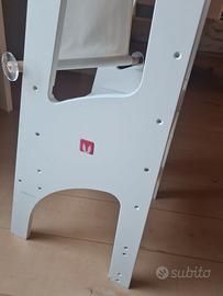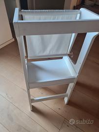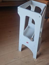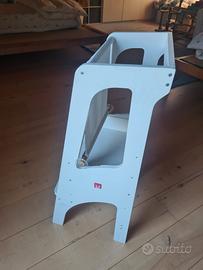 Vento bellissima Learning Tower (Torre d'Apprendimento) della Bianconiglio Kids, modello EVO, color bianco opaco. È lo strumento ideale per coinvolgere i bambini nelle attività in cucina in totale sicurezza, seguendo i principi Montessori. Regolabile: Il piano d'appoggio si può posizionare a 3 diverse altezze (30, 40 e 50 cm da terra) per seguire la crescita del bambino. Sicura: Design studiato per evitare il ribaltamento e fianchi lisci per impedire scalate pericolose. Vernici all'acqua atossiche e certificate. Accessorio incluso: Nel prezzo è compreso il telo di protezione originale, utilissimo per i bimbi più piccoli per evitare che scivolino fuori accidentalmente. Stato: Usata con cura, in ottime condizioni strutturali ed estetiche (come da foto).