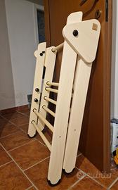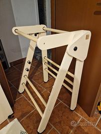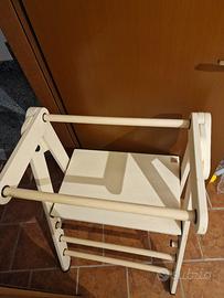 Torre Montessori regolabile e richiudibile, pratica e versatile, ideale per aiutare i bambini a partecipare in sicurezza alle attività quotidiane in casa. La versione gemellare consente l’utilizzo contemporaneo da parte di due bambini, mantenendo stabilità e comfort.Il design leggero e chiudibile permette di spostarla facilmente e riporla dopo l’uso: una volta chiusa occupa solo 20 cm.Caratteristiche principali:Altezza regolabile su tre livelli: 30 cm, 40 cm e 50 cm.Utilizzabile da bambini piccoli e più grandi.Può servire anche come pratica scaletta per adulti.Struttura solida e stabile, supporta un peso superiore a 80 kg.Facile da ripiegare e conservare.Perfetta per chi cerca una torre solida, multifunzione e salvaspazio, pensata per accompagnare i bambini nella crescita e nelle attività quotidiane