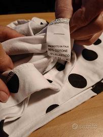 Comodi leggings per bambina con un simpatico motivo a pois neri su fondo bianco. Perfetti per il tempo libero o per stare in casa.