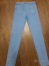 leggins azzurro a righe verticali bianche marca calzedonia indossato una volta