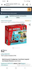 Lego pirati 10679 Juniors: La caccia al tesoro dei Pirati con tesoro, squalo bandiera, barca e personaggi.