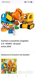 Lego camion e scavatrice cingolata in ottime condizioni ma priva di scatola Se interessato sul mio profilo trovi altri set lego duplo