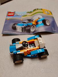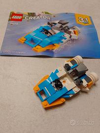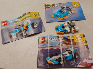Lego 3x1 cod 31072 Formula 1/Motoscafo/Macchina, con libretti istruzioni originali (scatola originale non presente). Alcuni pezzi sostituiti con altri della medesima funzione (forma o colore differente) che non compromettono la realizzazione dei 3 modelli