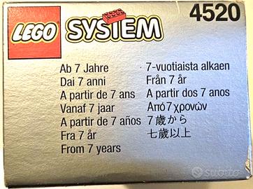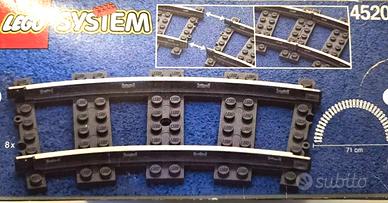 LEGO 4520. Otto binari curvi Lego System 9V. Confezione sigillata, in buone condizioni, presenta segni del tempo visibili nelle immagini.