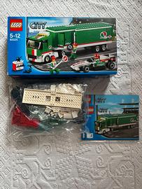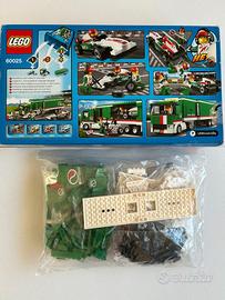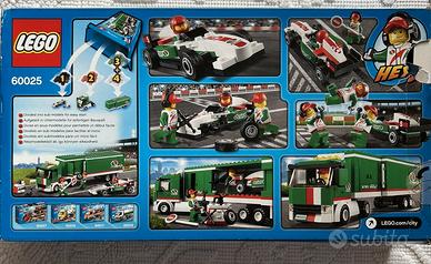 LEGO 60025 Set City Race Auto Grand Prix Camion Rimorchio Verde. Scatola praticamente integra, Istruzione Perfette, Tutti i pezzi presenti e verificati. Stato della confezione Ottimo, poco usato e conservato con cura. Pezzo raro fuori produzione. Altre foto con dettagli disponibili su richiesta.