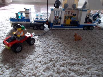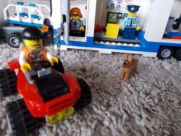 Il Centro di comando mobile è dotato di cabina staccabile, cella con funzione di evasione e spazio per 2 minifigure, sala di monitoraggio con schermi, antenna parabolica sul tetto, scrivania, sedile e area di magazzinaggio per la moto e gli attrezzi nella parte posteriore del rimorchio. Include 4 minifigure e un cane della polizia.
