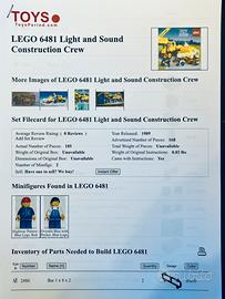 Vendo LEGO 6481 Light & Sound Construction Crew, set vintage del 1989, completo di istruzioni stampate a colori da PDF. Il set è senza scatola e viene venduto come da foto, con i pezzi visibili e i minifigure inclusi. Il modello comprende 2 minifigure ed è un set da collezione della linea Town Construction, molto apprezzato dagli appassionati LEGO vintage. Le istruzioni originali sono sostituite da una stampa a colori da PDF, quindi perfette per ricostruire il set anche se non sono le pagine originali. Condizioni •Set usato, vintage. •Luci testate e funzionanti •Venduto senza scatola. •Istruzioni incluse in copia stampata a colori. •Pezzi e minifigure come da foto. •Ideale per collezionisti, appassionati LEGO classic e fan dei set anni ’80.
