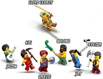 Con 7 minifigure - i ninja Kai, Jay e Lloyd Legacy, i maestri degli elementi Bolobo, Jacob e Gravis e il malvagioEyezor - questo playset offre ai bambini infinite opzioni per inscenare battaglie e allenamenti. Novità di gennaio 2021, Lloyd Legacy è uno speciale personaggio d’oro da collezione con un supporto per celebrare i 10 anni dei set NINJAGO.