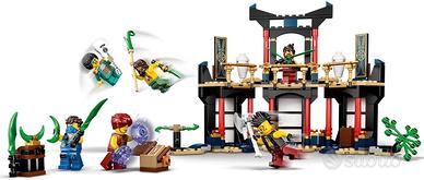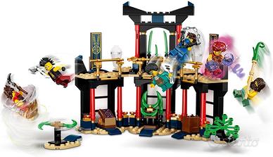 Il set da costruzione Legacy Il Torneo degli Elementi LEGO® NINJAGO® (71735) contiene un tempio altamente dettagliato e interattivo in cui i bambini possono esercitarsi nella tecnica dei ninja e organizzare incredibili battaglie.