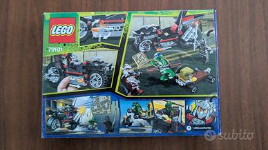 set lego 79101 ninja-turtles del 2013 ormai fuori produzione. Venduto completo di scatola e istruzioni. Unico difetto mancano uno dei 2 pezzi segnati nell'ultima immagine e l'elmo di un personaggio.