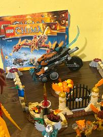 Lego Chima 70146 tenuto in perfette condizioni. Manca un pezzo come come visibile dall’ultima foto e una fiamma. Completo di istruzioni (la terza è un po rovinata) e minifigure