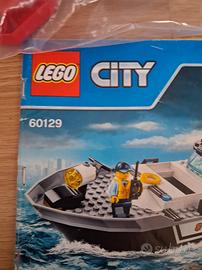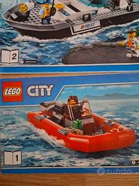 Set LEGO City 60129, Barca di salvataggio. Include le istruzioni per due modelli. Manca la scatola - Barca di salvataggio rossa. - Barca della polizia con figure.