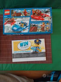 Set LEGO City 60176, Fuga sul fiume. Bellissimo Set LEGO City fuori produzione dal 2019, composto da una zattera di fortuna sulla quale un farabutto trasporta il carico rubato, e un motoscafo della polizia che lo insegue. Sono presenti: -Scatola in buone condizioni -Istruzioni in ottime condizioni -Pezzi del set impacchettati come nell'immagine Sono assenti alcuni pezzi minori, come la Puzzola e il Cappellino del poliziotto, che ho sostituito con un pezzo equivalente.