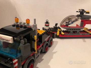 contenente un camion pesante con cabina, rimorchio esteso staccabile, elicottero con rotori funzionanti, cabina di pilotaggio apribile e una catena. Questo popolare giocattolo per i bambini include 2 minifigure.