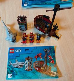 Vendo per inutilizzo Lego 60266 City nave da esplorazione oceanica (galleggiante). Praticamente nuovo. Prodotto ritirato dalla Lego, non più in commercio. Ci sono tutti i pezzi, con gru funzionante, gabbia anti-squalo, gommone, sottomarino ed elicottero, 8 mini figure, più uno squalo e una manta, tutto originale LEGO. Compreso di scatola (con qualche imperfezioni) e tutti i manuali di istruzione.
