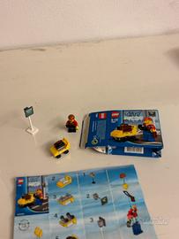 Set Lego City 7567 Viaggiatore, completo di personaggio e accessori. Scatola rovinata - Personaggio con valigie e carrello. - Cartello informativo con piedistallo.