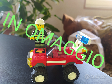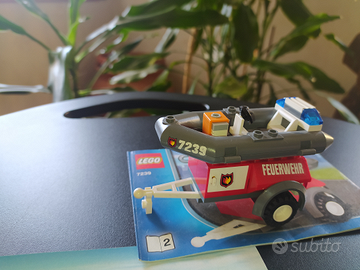Bellissimo set LEGO city pompieri composto da da un camion con scala e rimorchio per gommone con personaggio + un autoveicolo con pompa estraibile con personaggio.