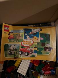 scatola con pezzi di costruzioni lego, con cui si puó costruire ció che si vuole.