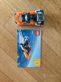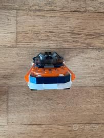 Vendo LEGO Creator 3 in 1 set 31089 Sunset Track Racer un set che trasforma il divertimento in pura velocità con 221 pezzi puoi costruire non una ma ben tre creazioni diverse senza bisogno di altri pezzi: una supercar sportiva dal look moderno, una macchina da corsa classica, oppure un veloce motoscafo. Composta dai seguenti colori: arancione,blu e bianco lo rendono un lego spettacolare da vedere e ancora più divertente da giocare ideale per chi cerca un set completo che unisce creatività collezionismo e adrenalina. L’unico difetto che presenta è che non dispone della sua scatola originale.