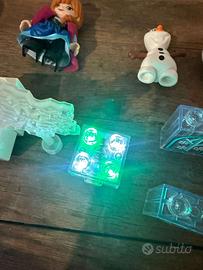Tutti i pezzi sono presenti – inclusi Elsa, Anna, Olaf, piatti, accessori di ghiaccio, finestre, mattoncini e la pietra luminosa funzionante (vedi foto).