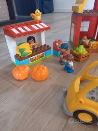 lego duplo fattoria + mercato, senza scatola né istruzioni ma con tutti i pezzi (tranne una forca). solo un pezzo danneggiato ma utilizzabile