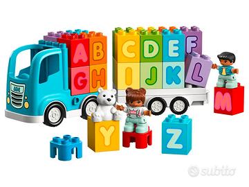 Con il Camion dell’alfabeto LEGO DUPLO, i bambini in età prescolare possono combinare la costruzione creativa, il gioco di fantasia e l’apprendimento dell’alfabeto. Giocattolo di apprendimento dell’alfabeto per i bambini I più piccoli migliorano le loro capacità motorie complesse mentre impilano i mattoncini delle lettere sul retro del camion. Quando creano avventure con il bambino, la bambina e l'orso, sviluppano la loro consapevolezza visivo-spaziale. I 26 mattoncini delle lettere offrono tante opportunità per familiarizzare con le lettere dell’alfabeto e migliorare le loro competenze linguistiche. Irresistibili giocattoli da costruzione educativi per i più piccoli I playset LEGO DUPLO mettono il gioco aperto, l’espressione di sé e l'apprendimento nelle mani dei più piccoli. Sono progettati per essere i migliori giocattoli per le esigenze dei bambini in età prescolare - e così le piccole mani non vedono l'ora di prendere i mattoncini e iniziare a costruire!